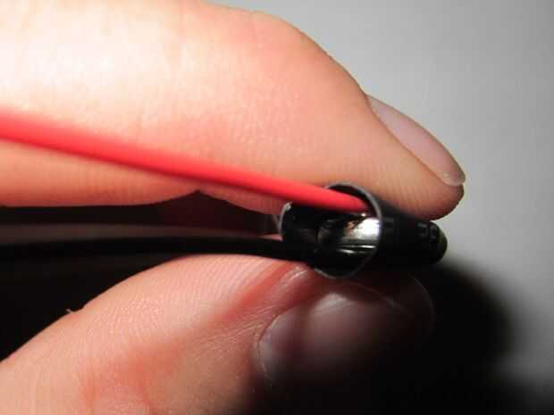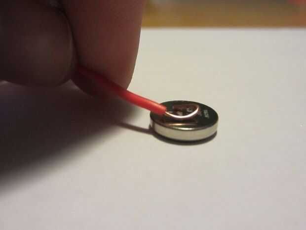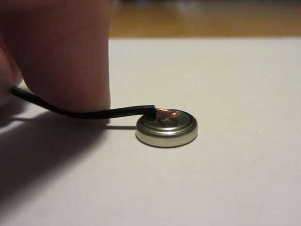 Asegúrese también de que empuje suficiente mediante el cable de conexión para que el aislamiento del cable se inclina sobre la moneda botón de la batería; Esto reducirá el riesgo del plomo de alambre cortocircuito los dos monedas / botones terminales de la batería. Si usted tenía colores de los cables específicos designados para cada polaridad de la terminal, este es el momento de recordar qué lado de la batería que está en la manga del encogimiento del calor.
