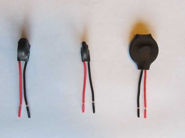 Para mayor seguridad, una pequeña postal / atadura de cables se puede utilizar para aplicar compresión adicional a la manga de encogimiento de calor, cables y botón paquete de la batería / de la moneda.