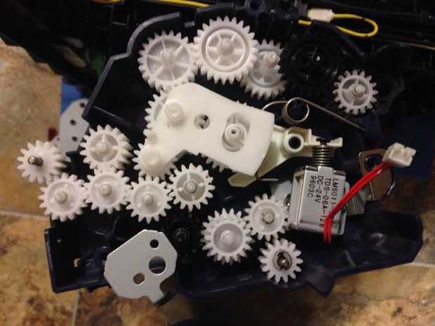 No tenía ninguna idea cómo intrincada el tren de la impulsión de las impresoras modernas fueron. Si sigues los engranajes eventualmente encontrarás un motor.