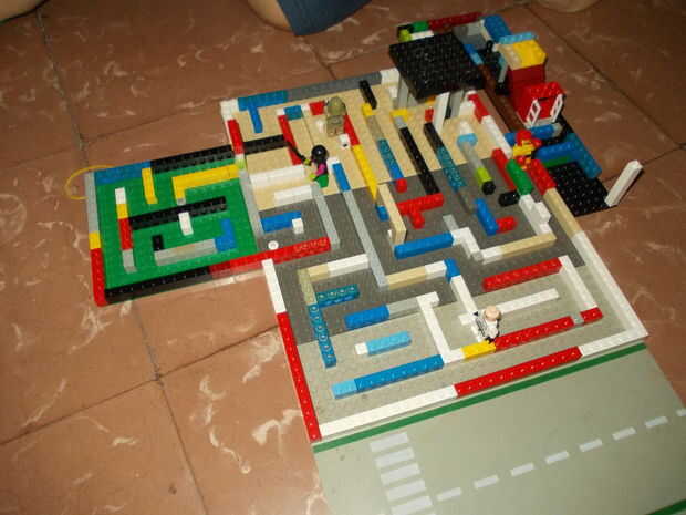 Coger un dado y una minifig por niño, el más joven tira el dado y el o ella según lo le haya salido el de at dado puede mover la minifig más o menos pinchos.