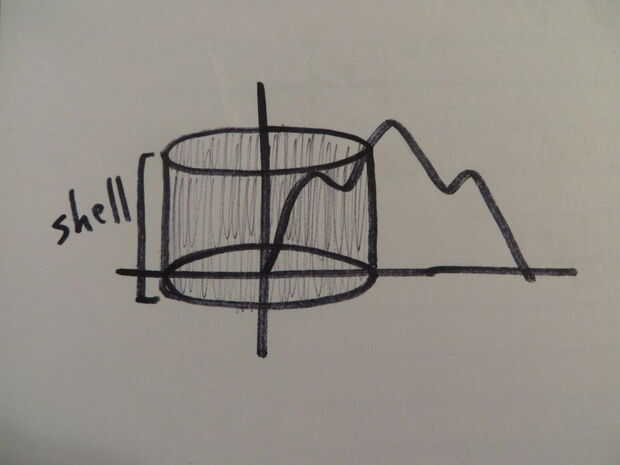 El método de Shell se encuentra integrando el radio de un objeto por la altura. El radio de un objeto representa lo que escoges en cualquier punto de la gráfica. El radio suele ser exactamente igual a x. La altura es cuán alta es la función en cualquier punto de la gráfica.