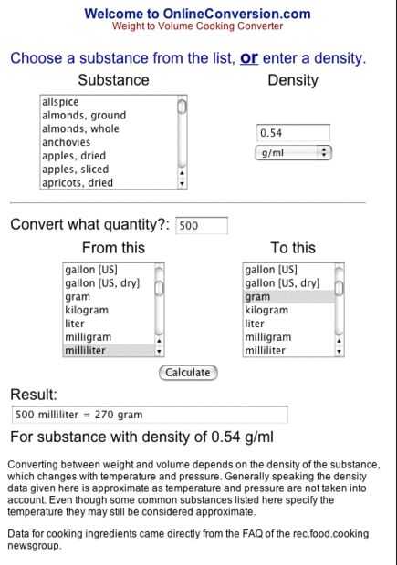 Elegir mililitro en el 'de esta' lista y elija gramos en la lista 'para esto',