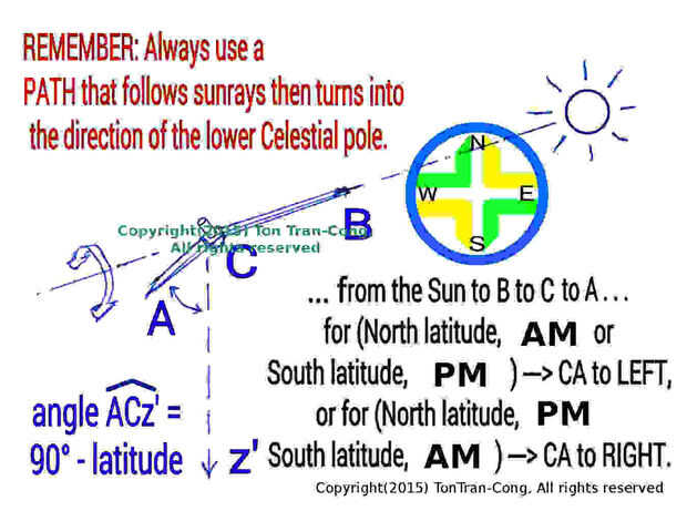 Figura 1: extendió las reglas para encontrar el polo celeste cuando el sol se oculta (por debajo del horizonte). Figura 2: Resumen de la las reglas para encontrar el polo celeste con cualquier posición del sol.