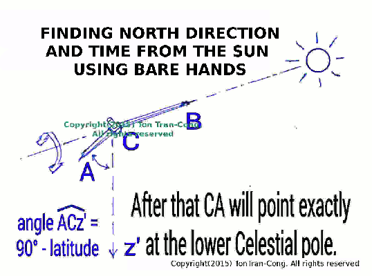 Una modificación es necesaria para la selección de la colocación de la mano derecha o izquierda de CA en "dirección norte de encontrar y el tiempo del sol con las manos desnudas". La modificación es: