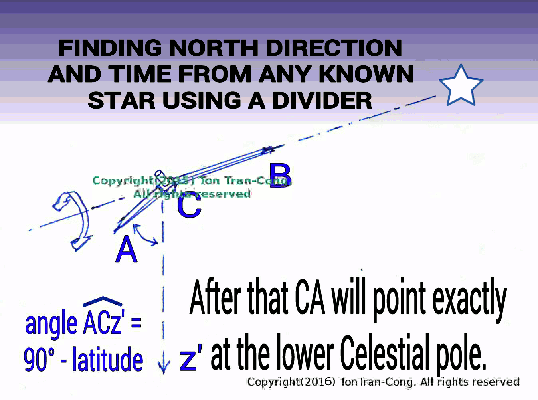 Cuando cualquier estrella se utiliza en su fecha en el año, el sol lleva exactamente 12horas. Cada mes después de eso, se reduce el plomo por el sol por 2 horas (o cada 12 meses por 24 horas). La última figura de la ilustración muestra el sol lleva la estrella por cerca de 5 horas en la esfera del reloj Celestial.