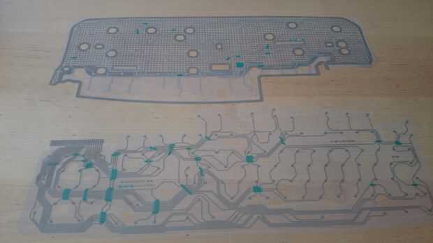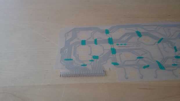Cada tecla en un teclado es sí mismo una especie de "coordenadas". Cuando una conexión desde una hoja de plástico toca uno de la otra hoja, actúa como un interruptor para dos cables diferentes presentes en el controlador. Combinando diversas conexiones uno con el otro, puede obtener una variedad de llaves de un pequeño número de conexiones. Mirando las hojas de plástico, puede ver cuántas conexiones están en cada hoja. En este teclado, hay 8 en una hoja y 18 en otro, lo que significa que tiene una matriz de 8 x 18, que permite un máximo de 144 claves.