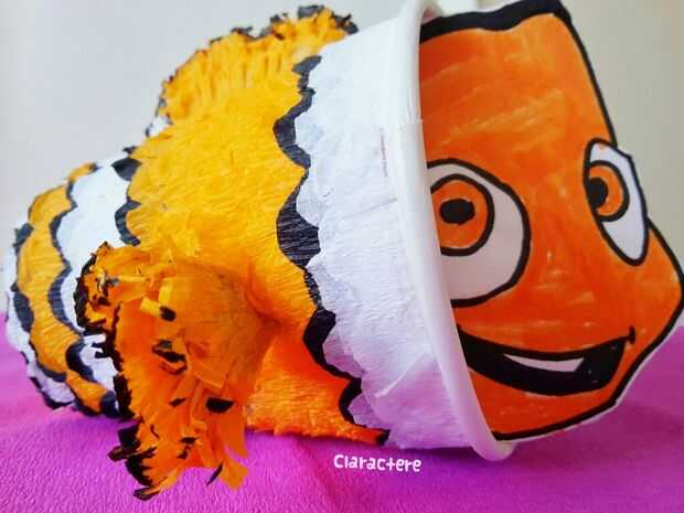 * papel crepe: naranja, blanco y negro de NEMO y azul oscuro, negro y amarillo para San Pedro. Y el papel azul para el océano.
