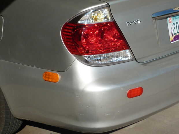 si, como yo, tienes uno de los sedánes de cuatro puertas plata alguna vez tan común, que, como yo, tenga problemas para encontrar en un gran estacionamiento. Yo he reducido este problema un buen poco a poner reflectores autoadhesivas en el coche. Una naranja en cada guardabarros y dos rojas en el parachoques trasero. Están disponibles en cualquier tienda de auto partes. Hace mucho más fácil encontrar el coche.