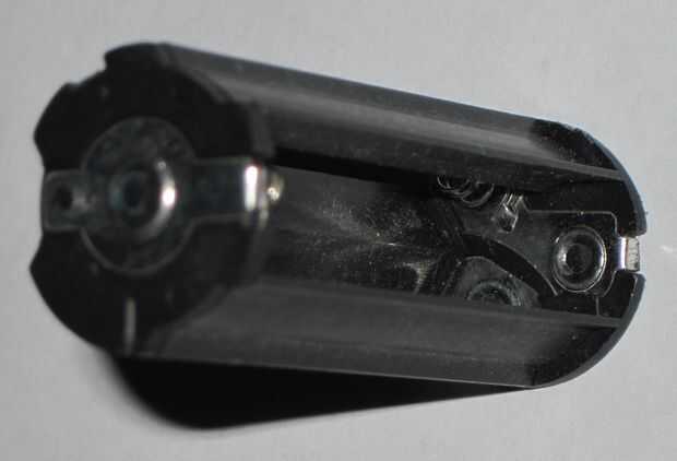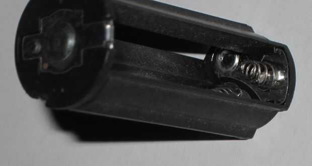 Soldado y presentada por una pequeña punta en el extremo "+" del titular para hacer contacto con el "+" en el adaptador de D.