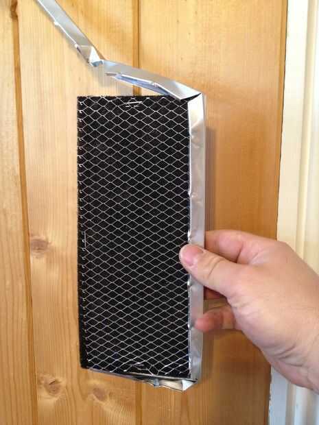 El filtro de aire bajo la campana de este microondas tiene un patrón de dulce que suplica por una nueva vida en una caja de altavoz!!!! Simplemente utilice pinzas para extraer el marco y cualquier grapas según sea necesario. La resultante de alambre malla deberá limpiarse antes del uso, pero puede ser instalado por el mismo método descrito en el post anterior.