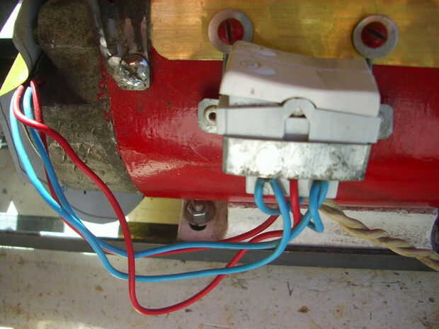 Para la terminación de la pieza es conveniente darle la lijada final rotando en sentido contrario. De otro modo la superficie de la pieza no queda bien, dado los extremos de las fibras de la madera se "peinan" en el sentido del lijado. Para eso aproveché el motor tiene (creo todos los motores de CA lo tienen) la posibilidad de hacerlo rotar en un sentido un otro según se conecten los cables verde y rojo, dos de cada color, lo alimentan.
