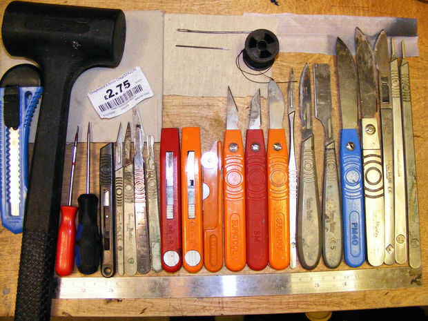 Procesamiento de material áspero con herramientas de mano