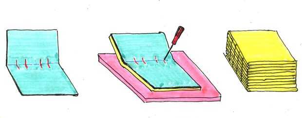 Coloque la tarjeta en el centro de un montón y usar un punzón para perforar a través de todas las capas en una superficie de espuma suave.