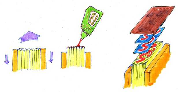 Uso un montón de PVA o cola para madera frotado en la costura, a medida que la capa con tela tipo malla para reforzarlo. Rematar con el material de la columna vertebral, no doblar los bordes sobre todo, simplemente séquela dando toquecitos hasta squidge todo el pegamento en los boquetes entre los racimos.