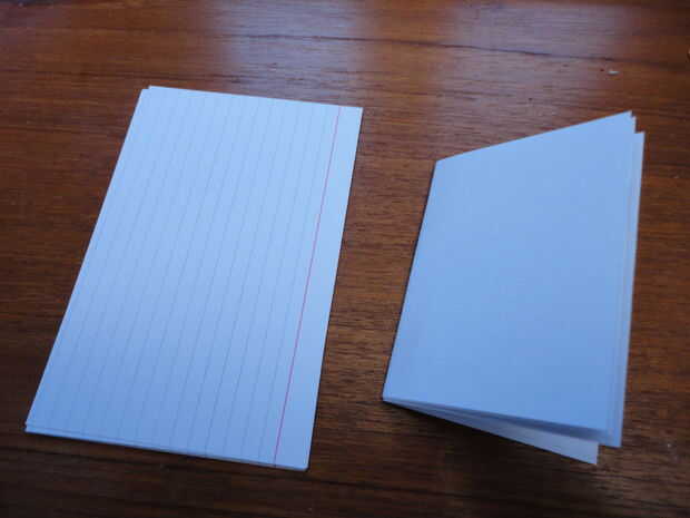 páginas, he utilizado tarjetas. Me gustan porque son gruesos y tienen un lado forrado y en blanco. así, tengo páginas para escribir y páginas para el dibujo. Si usted usa tarjetas, tenga en cuenta que su libro puede ser un poco rígido y difícil de hojear. Cierta flexión y uso ayudará a esto.