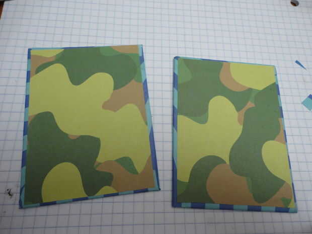 cuando sus cubiertas son secos, otro pedazo de papel y cortar un rectángulo de ligeramente más pequeño que la tapa de. Calefactorio en el interior de la cubierta de la pieza para cubrir las partes dobladas. No verá ninguna de la cartulina marrón en este punto. Otra vez, lo aplasta con un libro más grande mientras se seca para obtener agradable y plana.