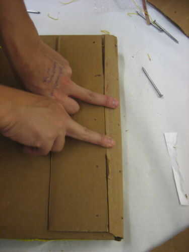 Entonces nos alineó otro pedazo de cartulina con el mismo ancho que la tapa frontal.