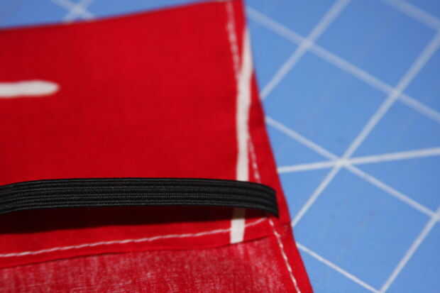 Cinta o elástico marca de libro: me gustaria incluir esto en la costura de las aletas. Medir la cinta o el elástico por lo que es en el lugar correcto y tiene una cola bastante larga. He encontrado que con la cinta, que desea coser este más cercano a la espina dorsal del libro, mientras que con el elástico debe estar más cerca del borde libre, y me gustaria incluir debajo de la aleta, por lo que estoy cosiendo menos.