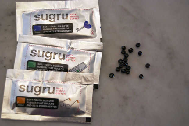He utilizado tres colores de sugru: azul, verde y naranja. Por supuesto, usted puede elegir el color, cantidades y adornos para satisfacer sus necesidades particulares.