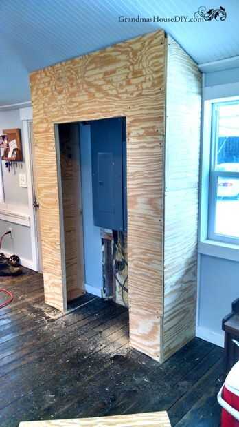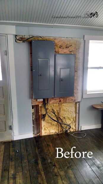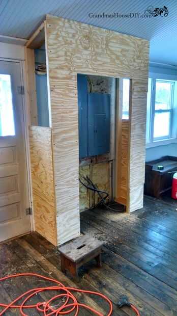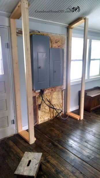 Así que hemos tenido este ojo increíble dolor en nuestra puerta de entrada desde el comienzo de la renovación de la casa. Podemos culpar a me y la épica falta de comunicación con nuestro electricista sigue siendo un muy llaga para mí porque al parecer nunca ocurrió a cualquier persona que nos necesita para discutir la situación de los nuevos paneles de modo que terminan aquí, justo por nuestra puerta. Fea. Fea. Fea. Dolor que he estado planeando y maquinando para obtener horrible ojo cubierto por todo este tiempo. Fuera de la casa mira a tan horrible, saludo para alguien que viene en la bienvenida a un buen conducto eléctrico pero a menos que ganar la lotería algún tiempo y desea contratar a alguien para realizar la tarea inmensa (y extraordinariamente costosa) de mover los paneles, lo único que puedo hacer es sacar lo mejor de esta fea situación. Por supuesto, mi plan comenzó con la idea de que yo quería hacer un armario de puerta de granero, como tengo varias maravillosas puertas de granero viejo poniendo todo :) Por lo tanto, es donde empecé.