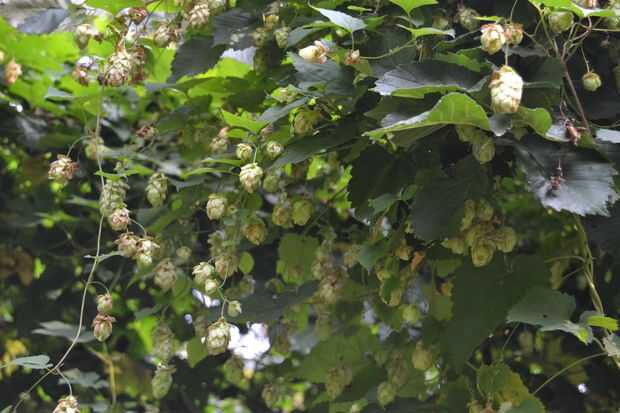 mientras que la mayoría de la gente sabe el lúpulo sólo como uno de los principales ingredientes de cerveza, también es absolutamente una hermosa planta que (al menos aquí en Berlín) crece "salvaje" en un montón de parques. a menudo overgrows otras plantas ya que necesita algo que puede subir en.