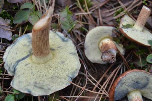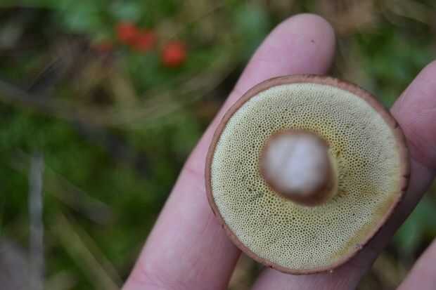 uno de los más comúnmente encontrados boletes es el bolete Bahía (en alemán se llama Marone), es decir la clase que encontré cuando me fui a buscar setas el otro día. crece principalmente cerca pinale árboles. tiene un gorro marrón, poros amarillo y un tallo marrón claro con manchas blancas. Cuando la carne o los poros son moretones, vuelven azules, esto es raro en principio pero no afecta el sabor de cualquier tipo. a menudo se esconden bajo las hojas o madera muerta, así que ten cerca o les podría pasar por alto.