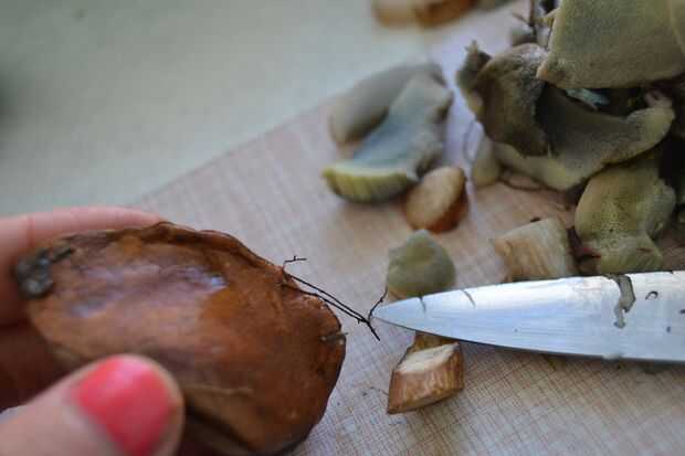 generalmente quitar los poros de setas boletus porque hacen el plato de ellos bastante viscoso, que otros no lo hacen. otra razón para eliminar la capa porosa aparte el limo es que a menudo hay pocas moscas y gusanos en esa parte (y no en la tapa) y así deshacerse de ellos. es muy fácil de quitar la capa porosa, se "pela" de whitout problema del resto de la seta.