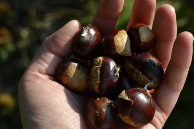 fin de semana pasado otra vez fue muy exitosa, en un día con mi novio hemos encontrado un castaño en un parque. las castañas comestibles, dulce se distinguen fácilmente de su primo, la castaña no comestible por la cáscara externa spiky que parece un poco a un erizo de mar. los picos puede lastimar, así que tenga cuidado al recoger castañas.