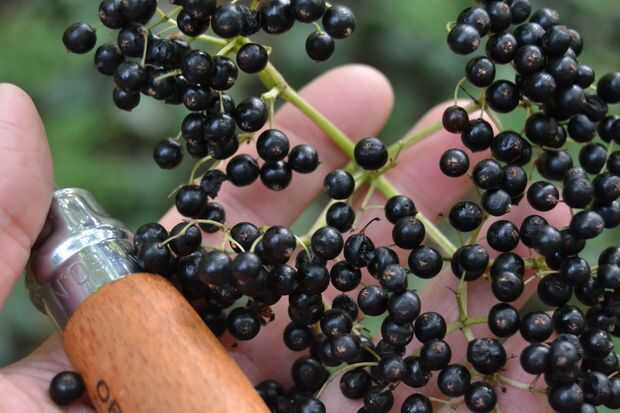 para recoger las bayas de saúco, es mejor cortar las panojas enteras del arbusto con un cuchillo o tijeras de jardín. las bayas pueden a menudo ser demasiadas hasta llegar a ellos, pero las ramas son muy flexibles, para que pueda agacharse con cuidado, corte de las bayas y luego dejar ir.