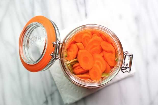Que la jarra se siente abierto en la encimera hasta que se enfríe lo suficiente como para manejar (o llega a la temperatura ambiente) y luego cerrarla y metes en la nevera. Las zanahorias se ablande un poco durante este tiempo, por tanto debe dejarlo salir por un tiempo!