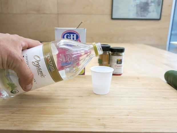 Sabores y preferencias varían aquí, pero en su mayor parte, usted querrá empezar con verter en un poco de vinagre. Vinagre blanco funciona bien, pero para más sabor por adelantado usted puede ir con balsámico (yum!) Añadir azúcar al gusto y algunas especias. He usado comino y cúrcuma, pero también común es sal, pimienta, curry, Cayena, realmente todo lo que quieres!