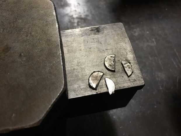 Me gustó el hecho de que los lados desiguales así que cortar dos más y luego se muele abajo la "mitad mayor" hasta que fueron cerca de un imán todo otra vez cuando pegadas. Nos pondremos a ello en un minuto.