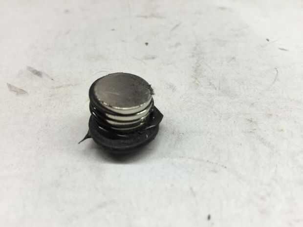 En el pasado había comprado un montón de imanes de neodimio fina para otro proyecto que falló horriblemente. No por los imanes, sino por el pegamento caliente solía fijar. Pega muy bien a los imanes, pero no a la base de plástico estaba pegado les demasiado. Cuento largo, me puse los imanes. Son aproximadamente 1/2" de diámetro y 1/16" espesor con adhesivo caliente en ellos.