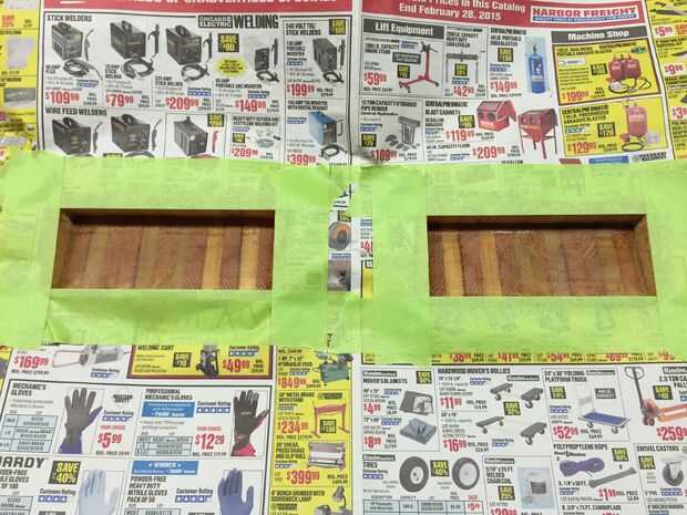 Que hacer, volver a enmascarar la configuración entera otra vez ya había trabajado slick. Si tienes curiosidad sobre mi configuración del enmascaramiento, apenas he hojeado por los casos de abierta cara abajo sobre un papel y trazado a su alrededor. Yo solo corte la sección trazada y entonces enmascarados los lados de la caja con cinta ancha. Esto me permitió subir el papel alrededor de la caja a la proyección de la cinta adhesiva y pegarlo. De esta manera que había quitado totalmente cualquier posibilidad de aerosol adhesivo para todo mi semi impresionante termina trabajo.