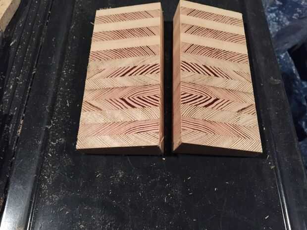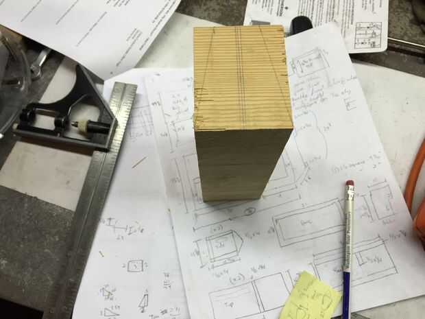 Una vez que el espacio en blanco estaba cerca del tamaño que quería, me dibujó algunas marcas de lápiz en un extremo que era básicamente el mismo lugar y ejecutar en su caso original. Trabajé a la matemática y calculó el ángulo para ser cerca de 11 grados. También pensé en la anchura de la cuchilla para el corte de centro porque realmente estaba pensando por delante esta vez.