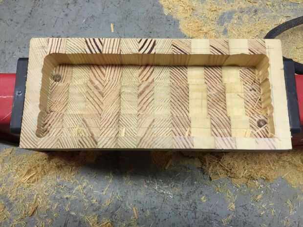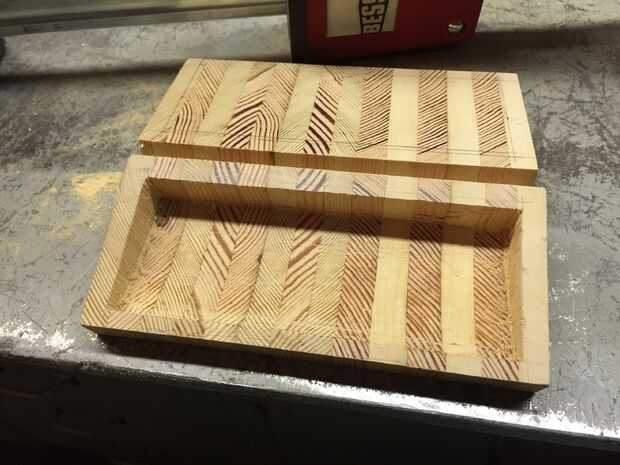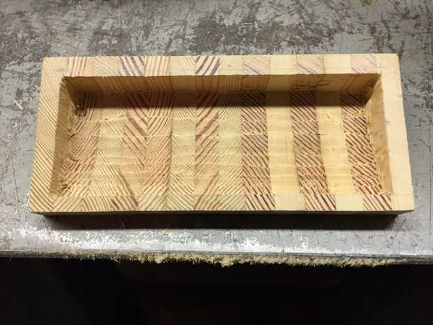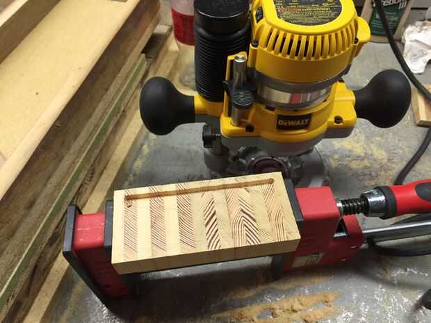 Por lo que rápidamente pude poner la sección en el medio que le tengo que quitar para formar el caso. Lo planeado en el uso de mi nuevo router que he usado una vez antes de este proyecto para despejar la mayor parte del material y luego ir de allí. Antes de empezar, tuve la visión de futuro a pensar en dejar suficiente material en la parte posterior para los tornillos de la bisagra. Así que encontré unas bisagras que pensé funcionarían, les ordenaron y luego cambiaron la línea de diseño en la espalda para agregar y 1/8" y dejar allí material suficiente. Podría haber sido un desastre, aunque estoy seguro que pude has origen tornillos más cortos. Algo para pensar.