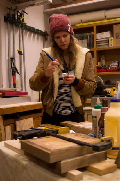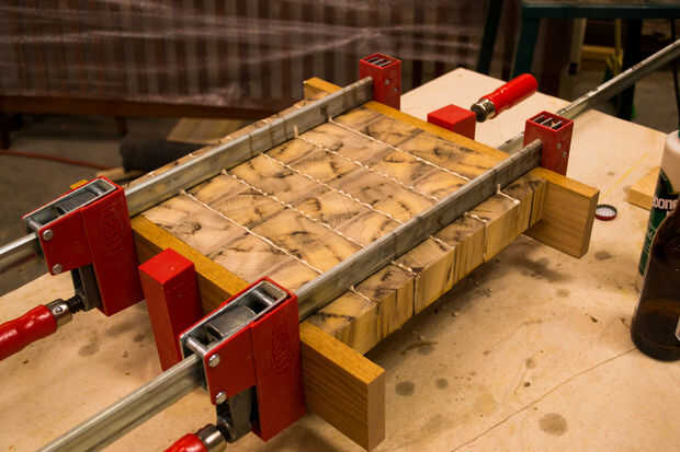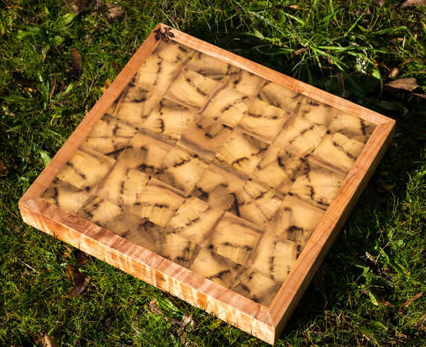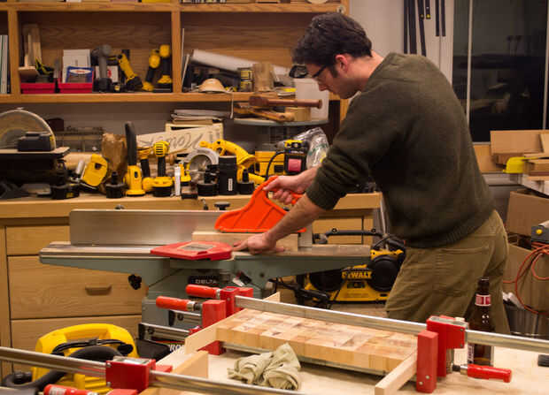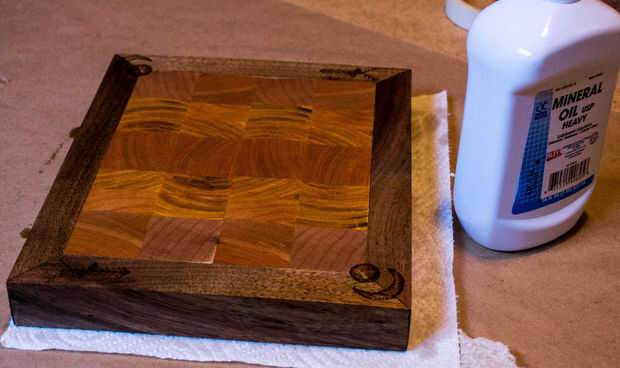 De origen a la mayoría de la madera de un lugar poco familiar fuera de Salem, Oregon llamado componentes de madera. Es maderas del noroeste-crecido todos, elegimos algunos nuez negra, roble blanco, cerezo silvestre y arce del azúcar/de la roca. La 'tabla de cortar grande' se hace con ceniza de edredón arce y spalted , donado por mi tío. Recuerde, palo madera para tableros de corte, arce es una opción segura. Llevamos a mi tienda de madera de tíos rip y plano de la Plaza de piezas. Estas tiras cuadradas estaban pegadas al lado en un tablero laminado. Cuando este seco lo habían planeado y corte transversal las tiras de los extremos al laminado de los tableros de corte. El propósito de esto era mantener el lote de construcción simple, que usted puede evitar malabarismos pequeños bloques de madera al pegar porque siempre se trabaja con piezas más largas. Hemos añadido una banda de madera a inglete para estética y fuerza (no necesita preocuparse de roturas a lo largo de las juntas de pegamento cuando está enmarcado en nogal o roble), algunos leña decorativa y un montón de aceite mineral y protegerlos.