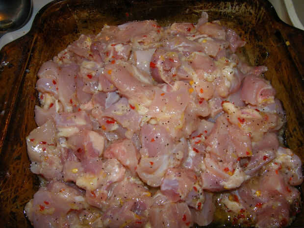 Mezcla todo bien en un bol y marinada rodajas de pollo durante la noche.