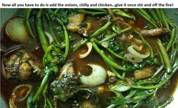 Ahora agregue su pollo frito, cebolla y guindillas verdes. le dan un gran revuelo y apagado fuego.!