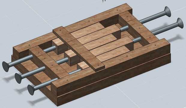 Perforé a sólo los agujeros en la madera para los tornillos de máquina. Había emparejado el agujero con el diámetro nominal del tornillo (no a la rosca). Usted podría oversize los agujeros y usar tuercas y las arandelas si quieres.