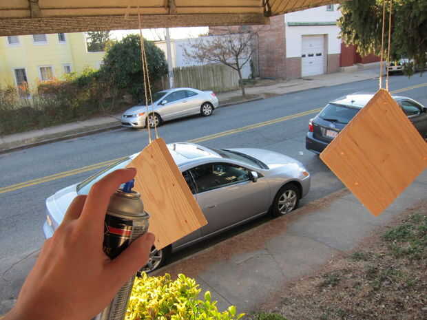 ¿Por qué no rociar algunos poliuretano en ellos?  Yo les lijar primero, para eliminar las asperezas.  Fue genial verlos girar alrededor de un rato, realmente.