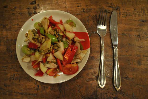 No estaba siempre un fan de col roja hasta que tuve esta ensalada. La preparación agrega mucho sabor y tiene un buen tiro. Col nunca probado tan bueno. Esta receta también puede encontrarse en charlieforstar.com..Ingredientes:semillas de calabaza cru