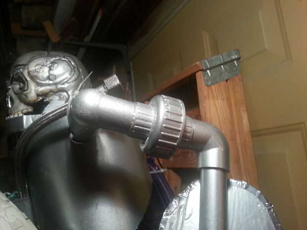 En el extremo libre del brazo añadir otro codo de 90 y otra compresión sola para formar la articulación del codo. En lugar de una simple curva 90 codo para conectar el brazo inferior que la guarnición de la compresión, opté por usar dos codos de 45 grados después del codo de 90 grados. Esta curva escalonada permite para realinear el tubo del antebrazo con el brazo superior.