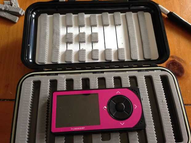 1. Alinee su CGM con donde usted guste dentro de la caja y marque en la espuma.