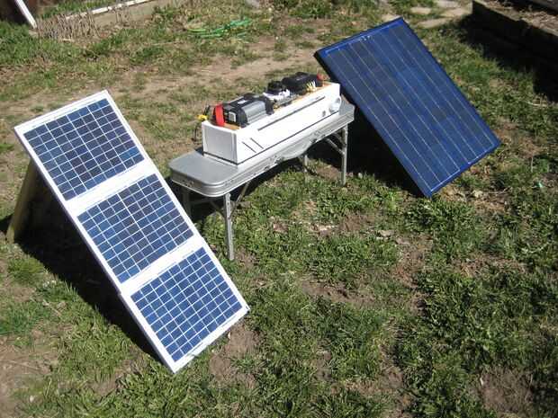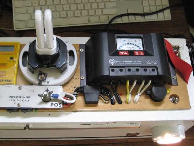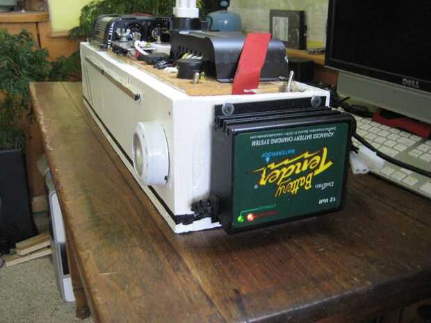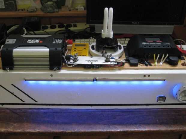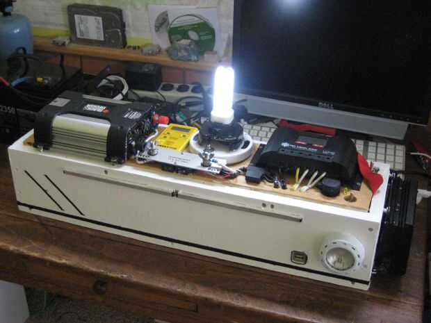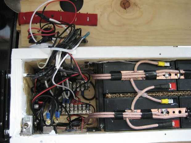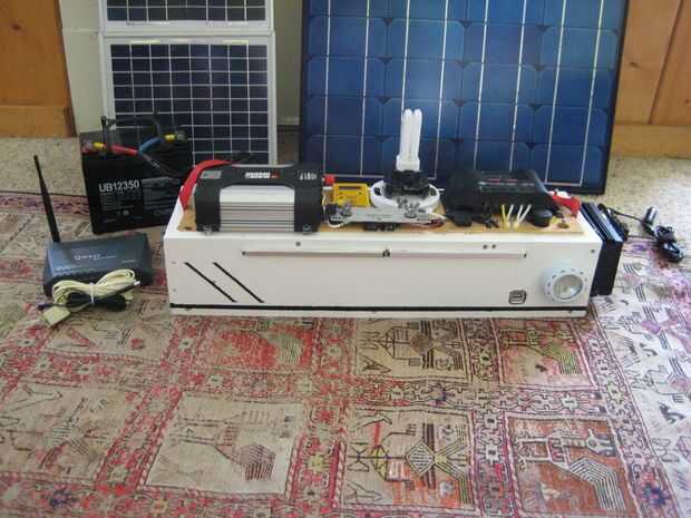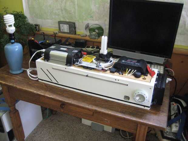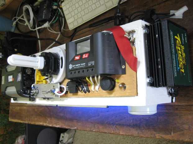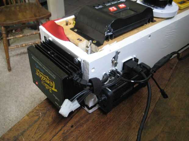 Se trata de un sistema solar que construí hace unos años. Acabo de hacer una importante actualización en el sistema con pilas nuevas, cargador solar, cables, fusibles y AC sistema de carga. Casi todo fue cambiado. La caja principal es un poco pesada, pesa alrededor de 35 libras más la batería extra es otro 15 libras. El sistema ha sido bien probado bajo cargas, aunque no he tenido oportunidad de cargar completamente en solar todavía. La caja está bien fundida y todas las conexiones se han doblado o soldado o ambos. El cuadro no es exactamente a prueba de agua pero pino es muy fácil trabajar con y es fuerte. Tal vez en un diseño más tarde en mover todo a un mejor recinto de prueba de agua.