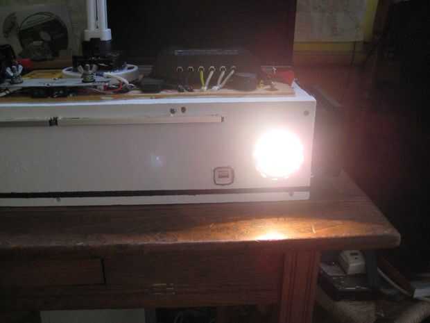 1 11 vatios fluorescentes hackeado de una linterna de Coleman 12VDC