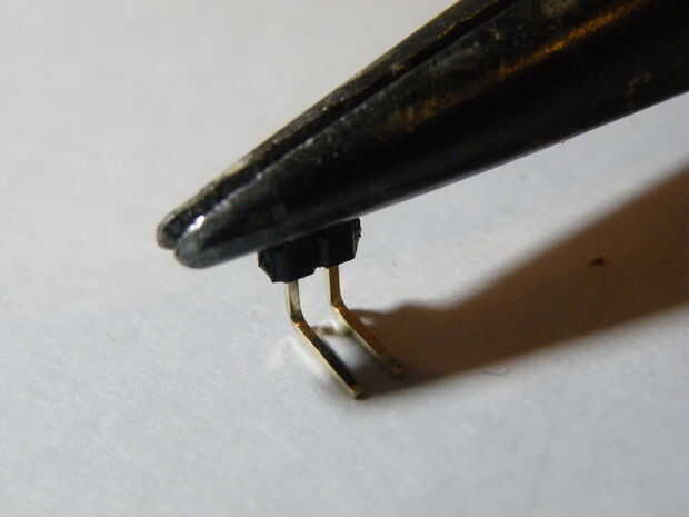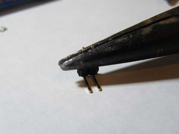 Diapositiva siguiente la parte de plástico del encabezado de la tira hacia abajo tanto como sea posible. Agarre las clavijas con pliars y presione hacia abajo la superficie de la mesa hasta la tira de plástico se mueve hacia abajo.