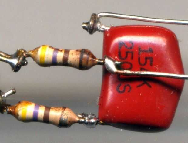 Las resistencias son oro, violeta, marrón y amarillo con bandas.