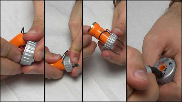Marca positivo (+) y negativo (-) terminales con un marcador permanente.