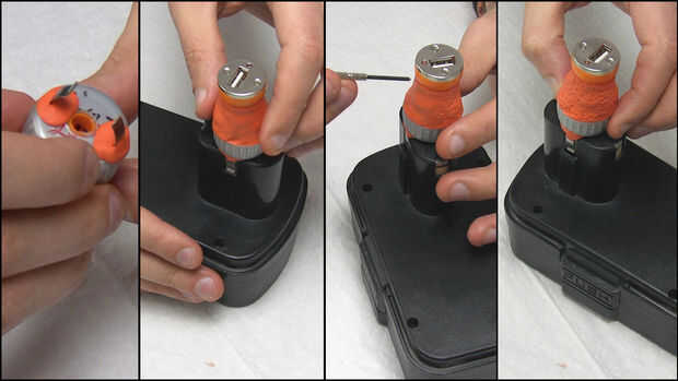 Colocar el cargador en la batería y ajustar la longitud, anchura, forma de conectores, para que encaje perfectamente.